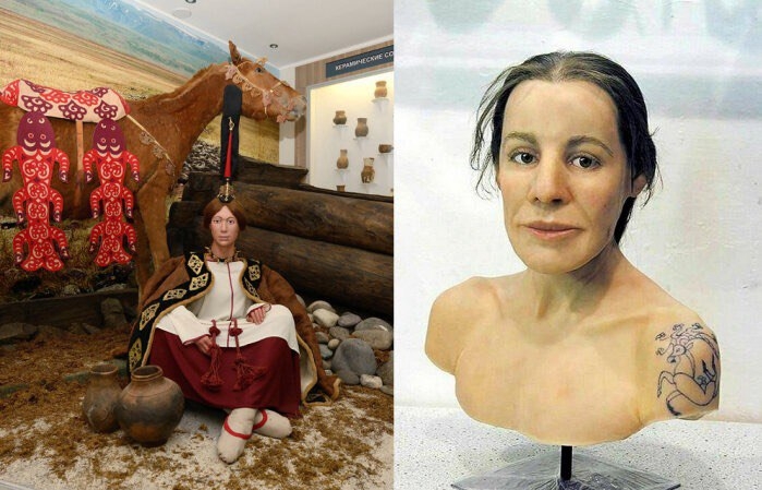 Её тело было украшено искусными татуировками (символом сакрального статуса), а похоронена она была в сопровождении шести осёдланных коней — чтобы беспрепятственно переходить границы миров.